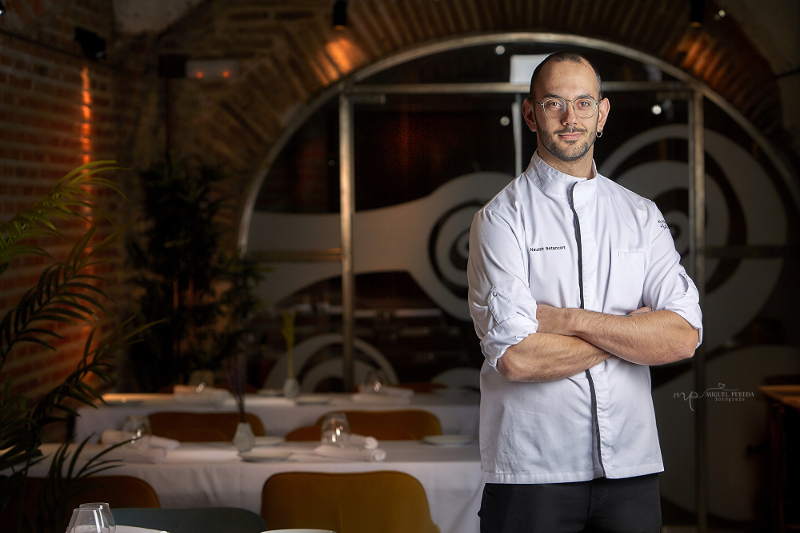 Para un fotógrafo gastronómico, trabajar con el producto de Nauzet Betancourt es jugar con ventaja. Su paso por la Gastro Bodega de Martín Berasategui y su actual labor en Arrope lo posicionan como un cocinero que no solo domina el sabor, sino que construye platos con una sensibilidad visual extraordinaria.